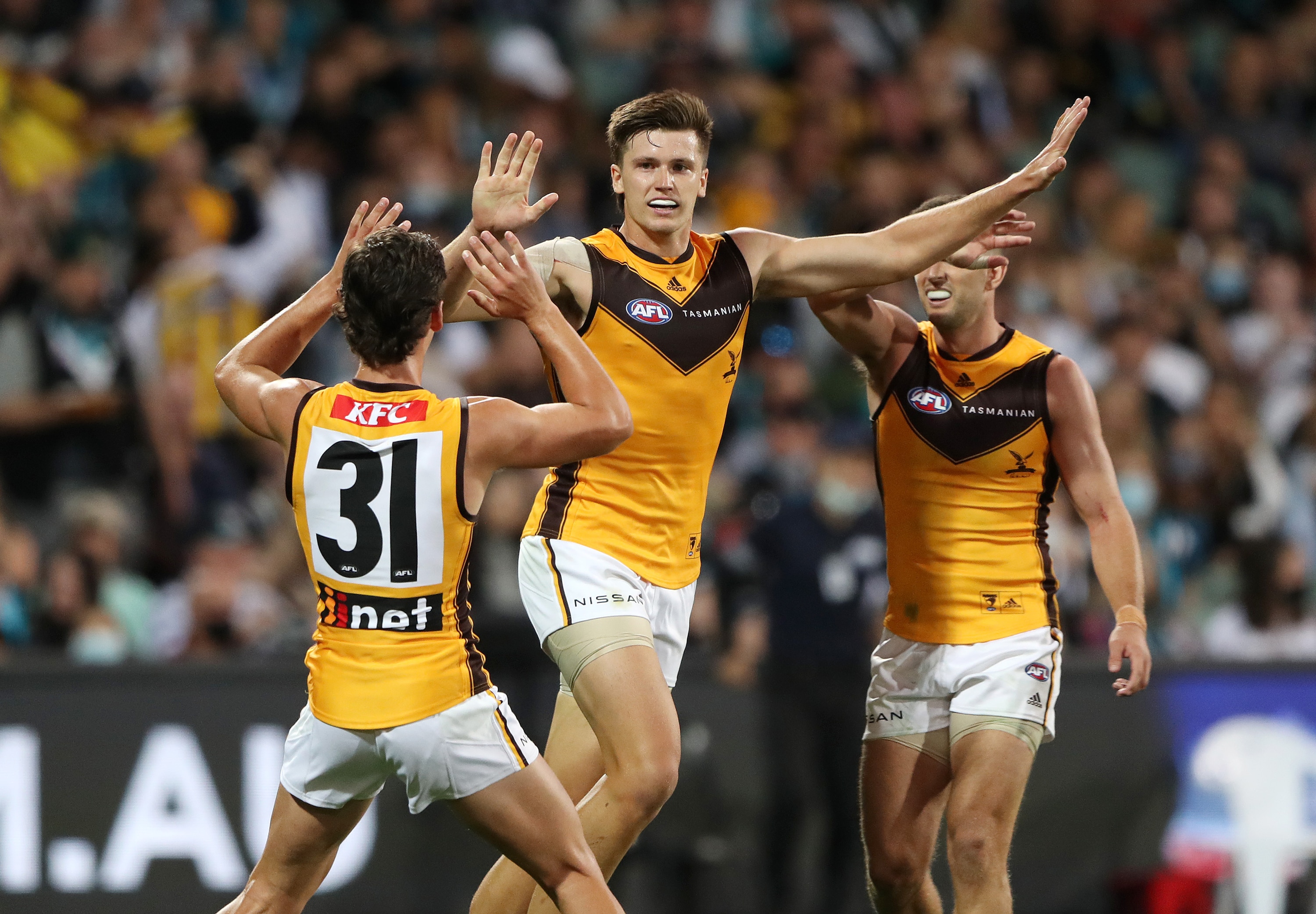 The Hawks scored six goals in the quarter and were 44 points up before two late strikes from Port's Powell-Pepper reduced their lead to 36 points at the last change.