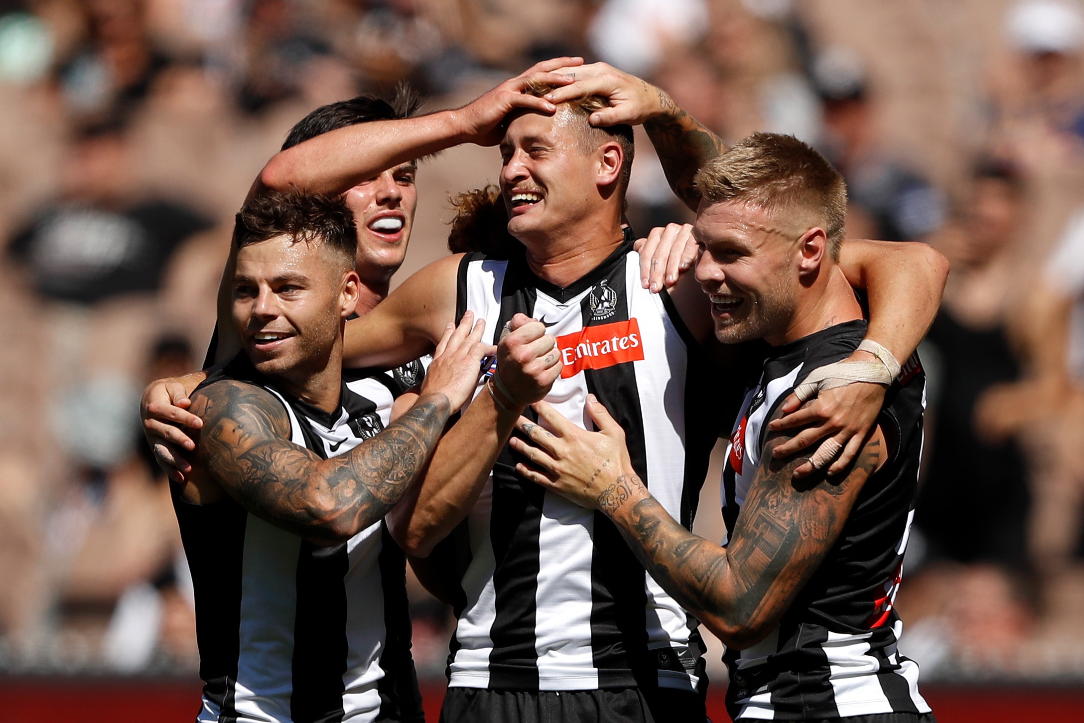 But the Magpies settled before the main break and then took flight as Jordan De Goey asserted his authority with 10 disposals, four clearances and a goal in the sizzling third-quarter surge.