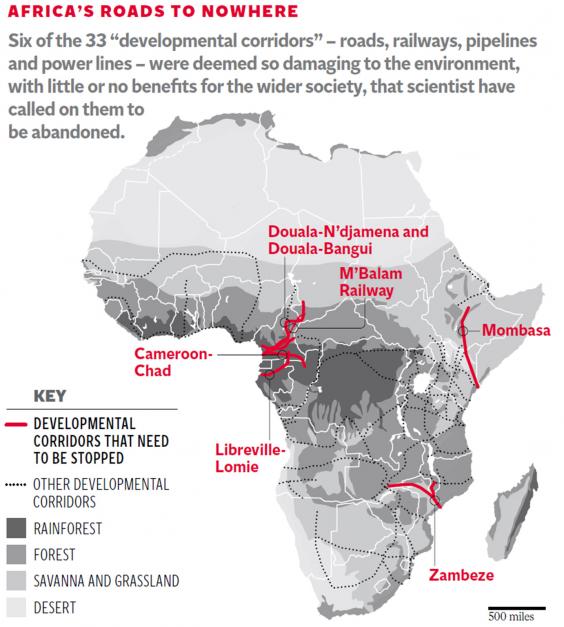 “Africa is changing now probably faster than any continent in human history and the main reason for this is that we are seeing a tsunami of new kinds of development pressures mainly as a result of about 53,000 km of new development corridors – road, railroads and power-lines – that are going to be criss-crossing the African continent,” said Professor Bill Laurance of James Cook University in Cairns, Australia.