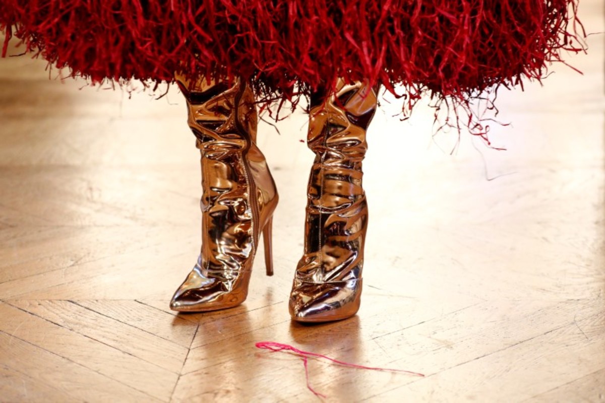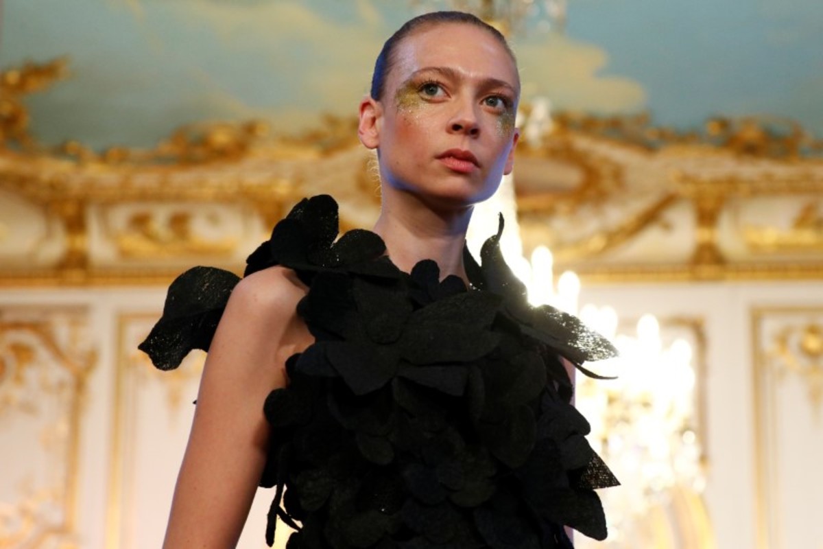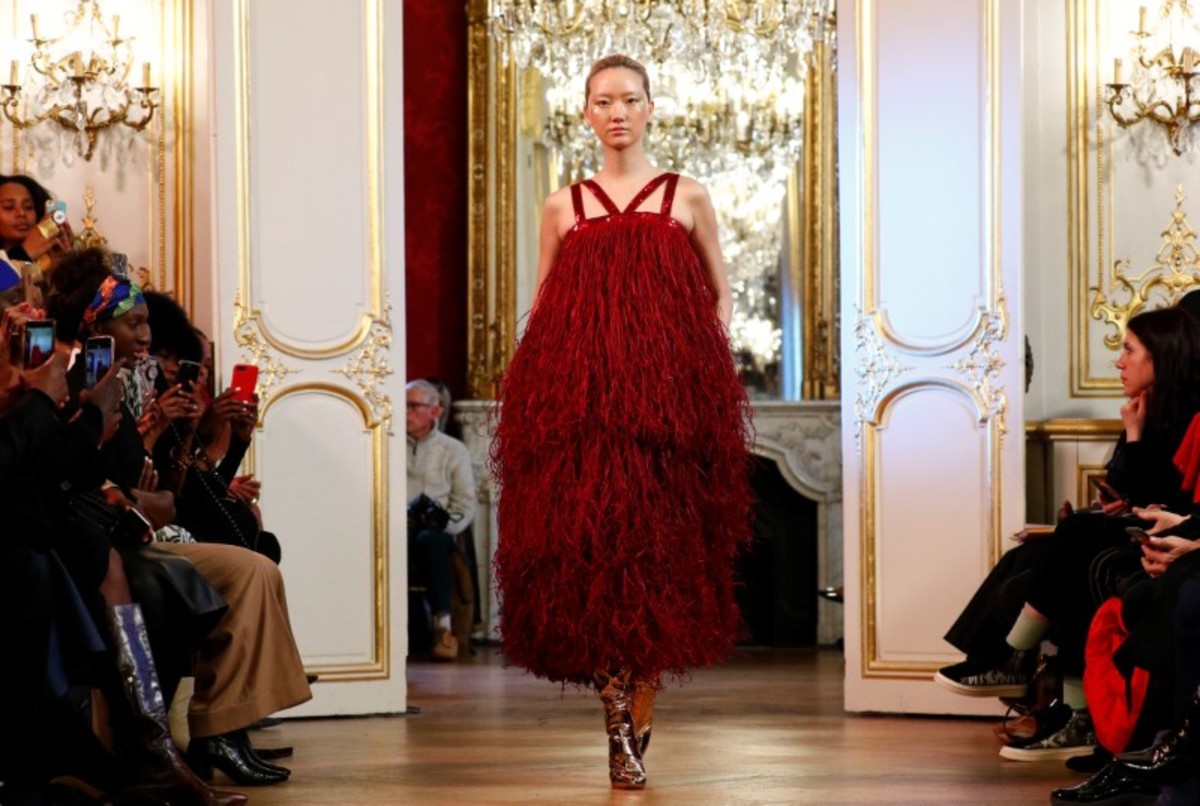 A model presents a creation by designer Imane Ayissi as part of his Haute Couture Spring/Summer 2020 collection show in Paris, France January 23, 2020. REUTERS/Francois Lenoir