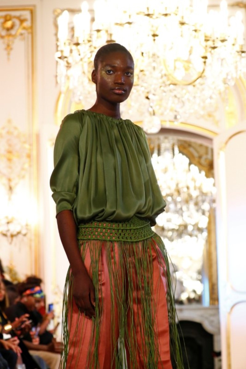 For his show late on Thursday, which was chosen to close this year's edition of the Paris Haute Couture fashion week, models walked down the catwalk in a Paris hotel to a soundtrack of African music.