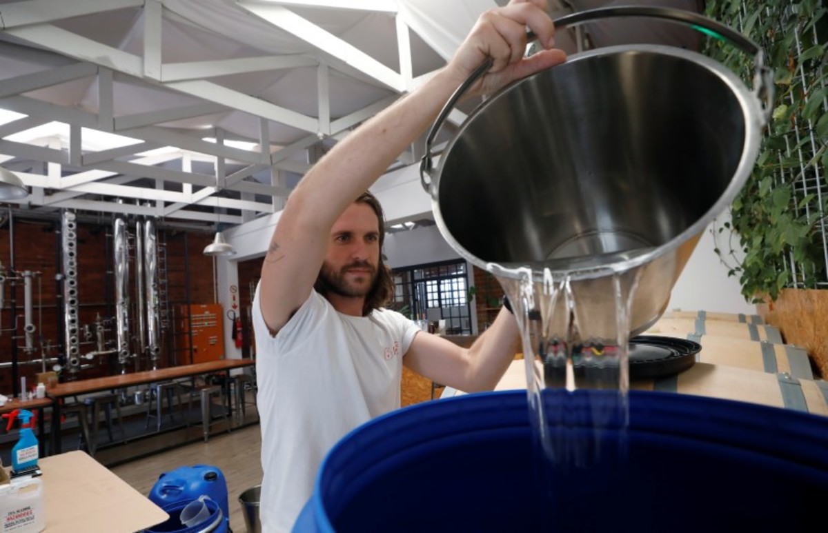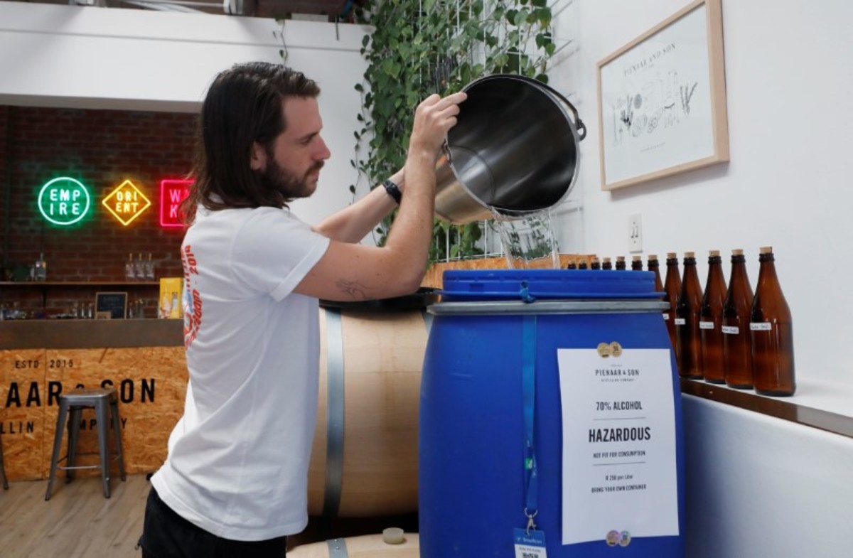 He had 140 liters of the 70 percent ethanol waste - called "gin heads" in the trade - just sitting around, so he posted on social media that anyone who needed some could have it for free to turn into the hand wash at home.