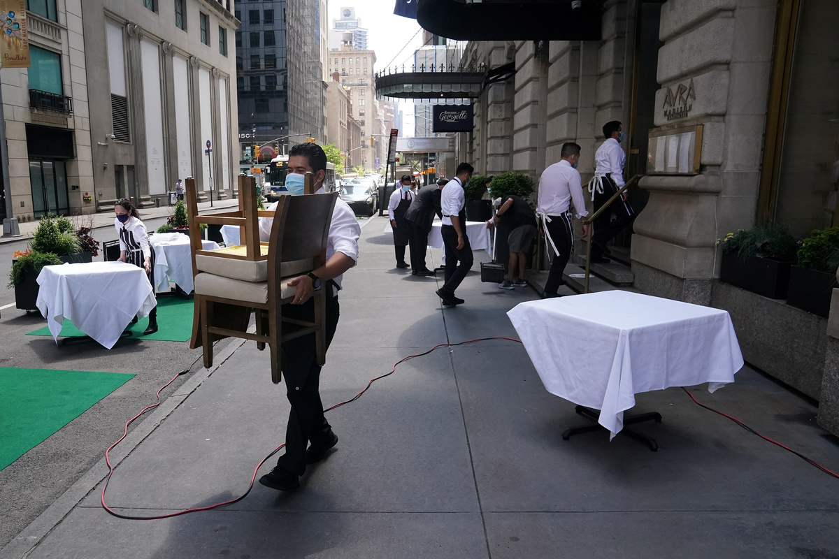 New York City, the nation's most populous metropolitan area, was the last region to move into Phase 2 of New York state's economic reopening plan. Restaurants and bars began offering outdoor service and many retailers started to allow patrons back into their stores. Barber shops and hair salons welcomed customers for the first time since mid-March, with some fully booked for the next two weeks.