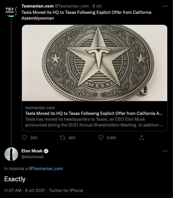 In reality, the move is most likely fueled by a combination of factors, including taxes, Texas’ pro-business attitude, and the fact that Musk enjoys living in Austin, says Texas Monthly in a recent article dissecting the matter “If Musk wants to [...] stamp his likeness upon the energy industry, before departing for Mars, it makes sense to do it from Texas,” the article reads,