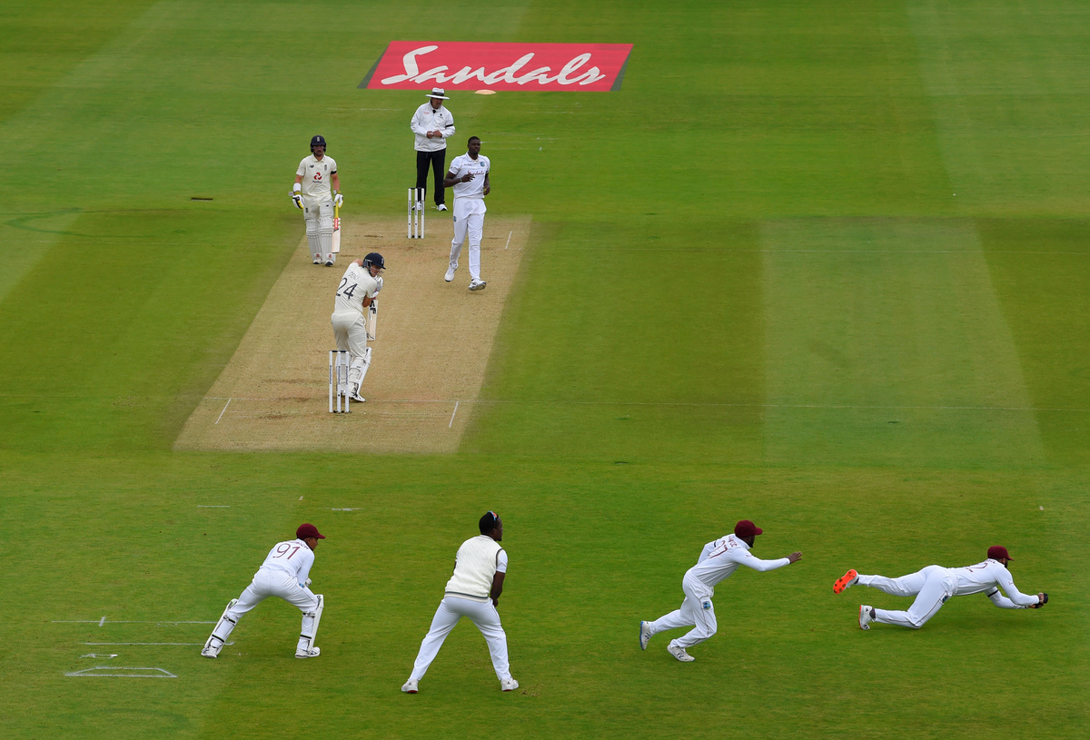 Players from both teams "took a knee" before the match started, having observed a minute's silence to mark the victims of the novel coronavirus and also former West Indies batsman Everton Weekes, who died last week.