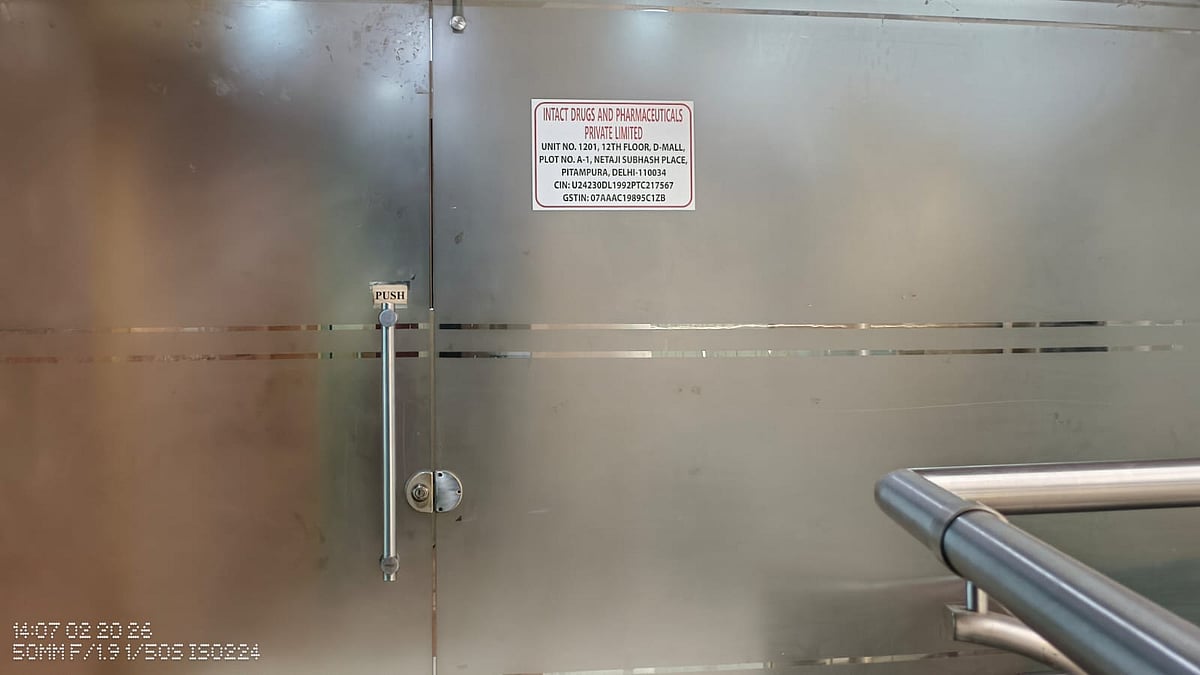 Six rooms across two buildings in Netaji Subhash Place now house the offices of at least eight companies linked to current and previous directors of the company formerly known as Maiden. Five are in the medical or pharmaceutical sector: CureClip Pharmaceuticals, VMK Pharmatech, MG Lifecare LLP, Intact Drugs and Pharmaceuticals Private Limited, and Real Drugs Private Limited. Of these, only Intact was open and functioning at the time of our first visit on February 20.