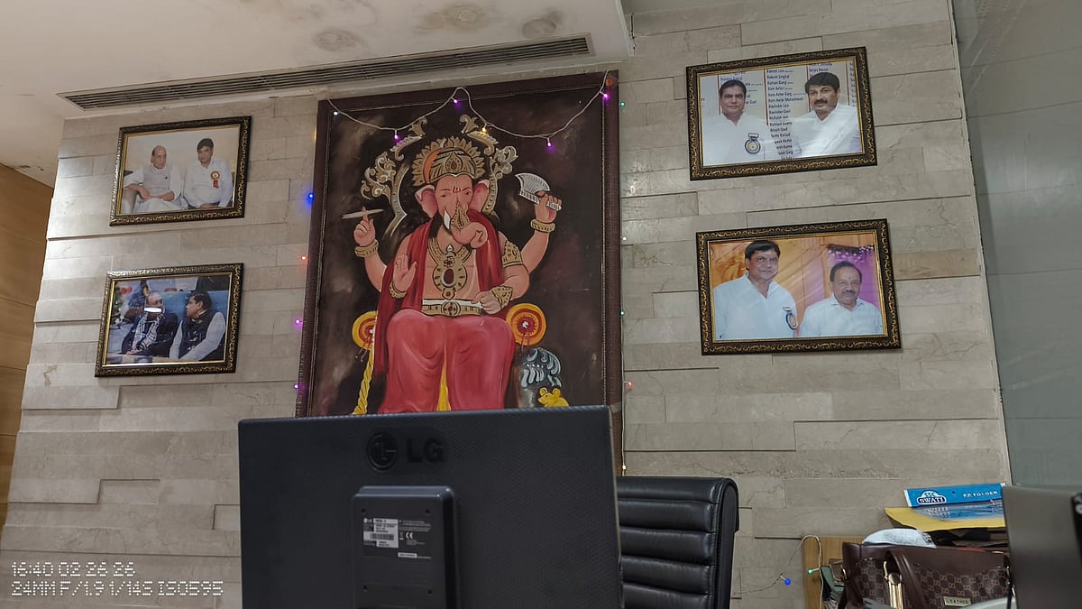 Walking into the Intact office, it is hard to ignore the photographs lining the wall. In them – taken at what appears to be a religious event – Naresh Kumar Goyal, a director of both Intact and CureClip, is pictured alongside prominent leaders of the Bharatiya Janata Party (BJP), including Defence Minister Rajnath Singh, Union minister Manohar Lal Khattar, former Union minister Harsh Vardhan, and Delhi MP Manoj Tiwari, among others.