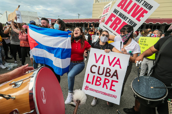 During the week, members of the San Isidro Movement, a collective of young artists and activists who oppose Miguel Diaz-Canel's regime in Cuba, had participated in a hunger strike. On Thursday night, Cuban authorities violently repressed them, sparking an unprecedented massive protest Friday night. On Saturday, San Isidro supporters called for another protest in front of the Cuban Ministry of Interior Commerce to demand the closure of dollar stores.