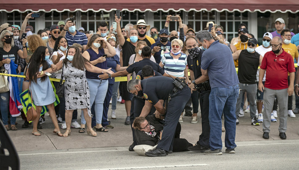 MIAMI — During an anti-communism rally Saturday afternoon in Little Havana, Miami police took five people into custody — including Cuban influencer and event organizer Alex Otaola — after chaos erupted when a known defender of the Castro regime showed up. Police released them a few hours later.