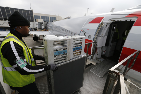 Outside the cabin, near the tail of the plane, Robert Williams, a 27-year veteran of American Airlines, directs his crew of two men and two women to unload about 5,000 pounds of luggage, cargo and mail.
