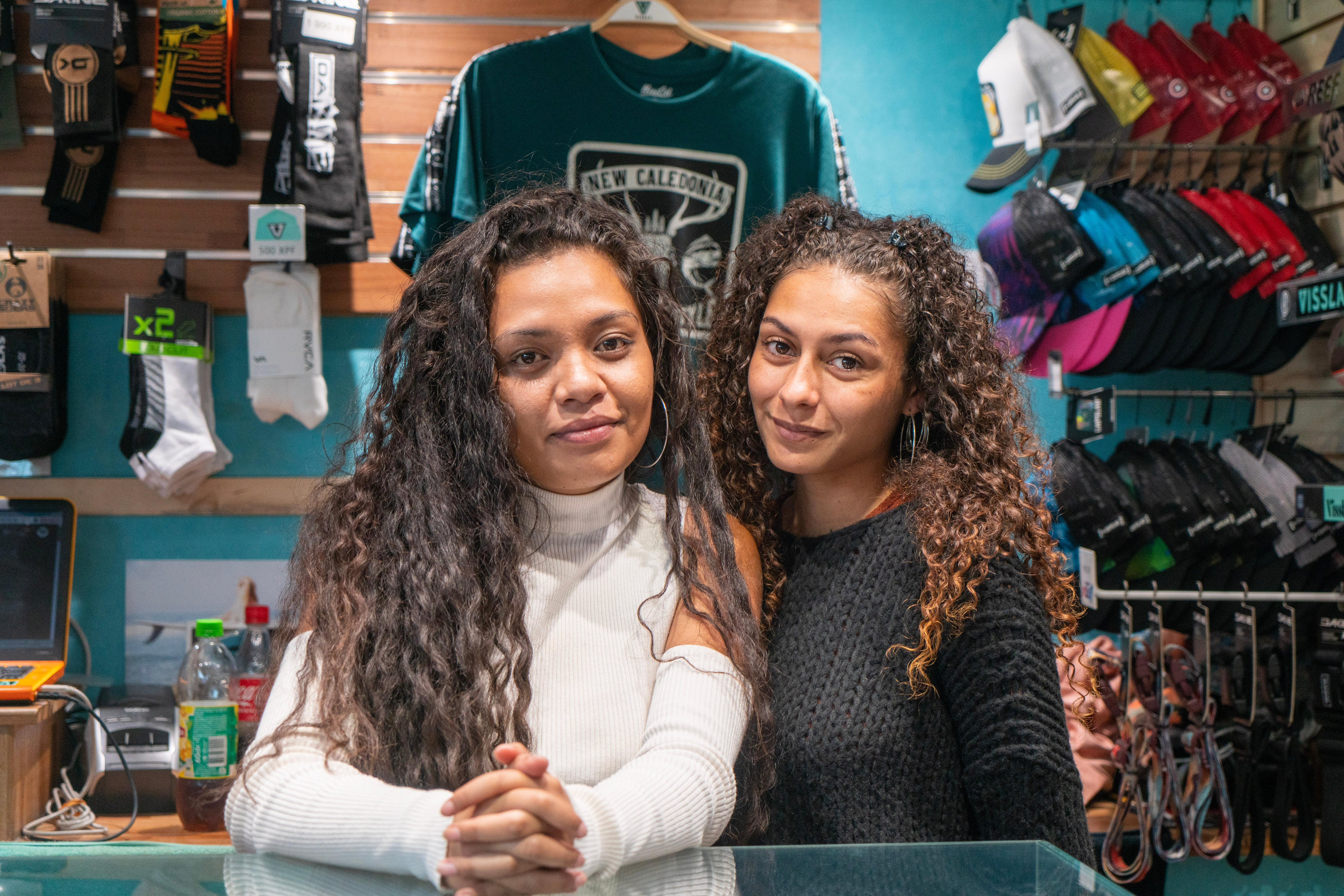 Talou Kesia works in a reef sporting goods shop at Anse Vata beach, just metres from the shoreline.