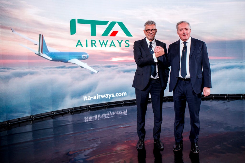 Italy’s new national airline ITA flew its inaugural flights Friday and unveiled its brand and logo, recycling the red, white and green of its Alitalia origins as it tries to chart a new future for the troubled sector.
