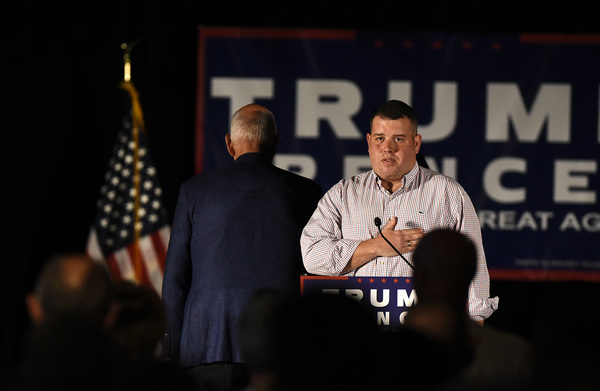 "As I come before you today, it's been an interesting few days," he said early in his speech, drawing nervous chuckles. "But I got to tell you, I joined this campaign in a heartbeat because you have nominated a man for president who never quits."