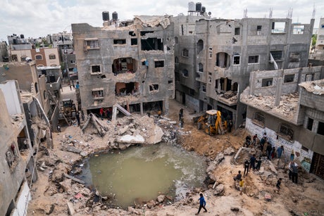 The airstrike turned his home into a crater. On Sunday, the massive hole was filled with murky water spewing from broken water and sewage lines.