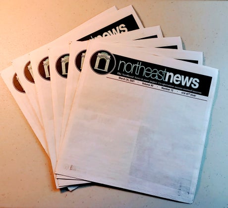 In the past week, the 89-year-old newspaper has received more than $3,000 in pledged donations, including one from Florida after the blank front page received national attention. A handful of new advertisers have emerged, along with other ideas to keep the Northeast News afloat, said Michael Bushnell, publisher and co-owner.