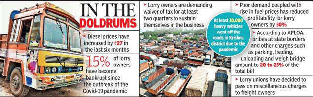 VIJAYAWADA: While the Covid-19 pandemic has hit the transport sector, particularly road transport, the steep hike in fuel price comes as a double blow to lorry owners across the state.