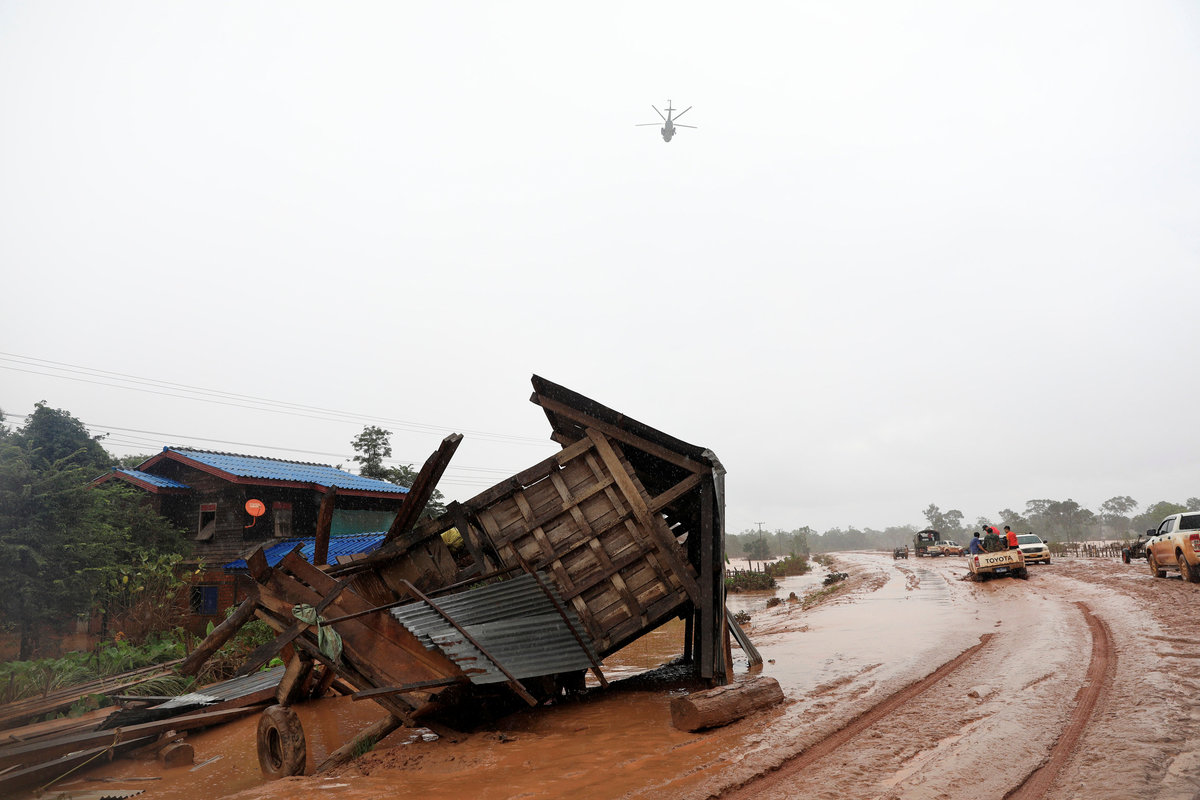 KHOKONG, Laos (Reuters) - Troops searched for survivors in the remote southern tip of Laos on Thursday, three days after the collapse of a hydropower dam sent a torrent of water charging across paddy fields and through villages, as rescuers rushed aid to thousands of homeless.