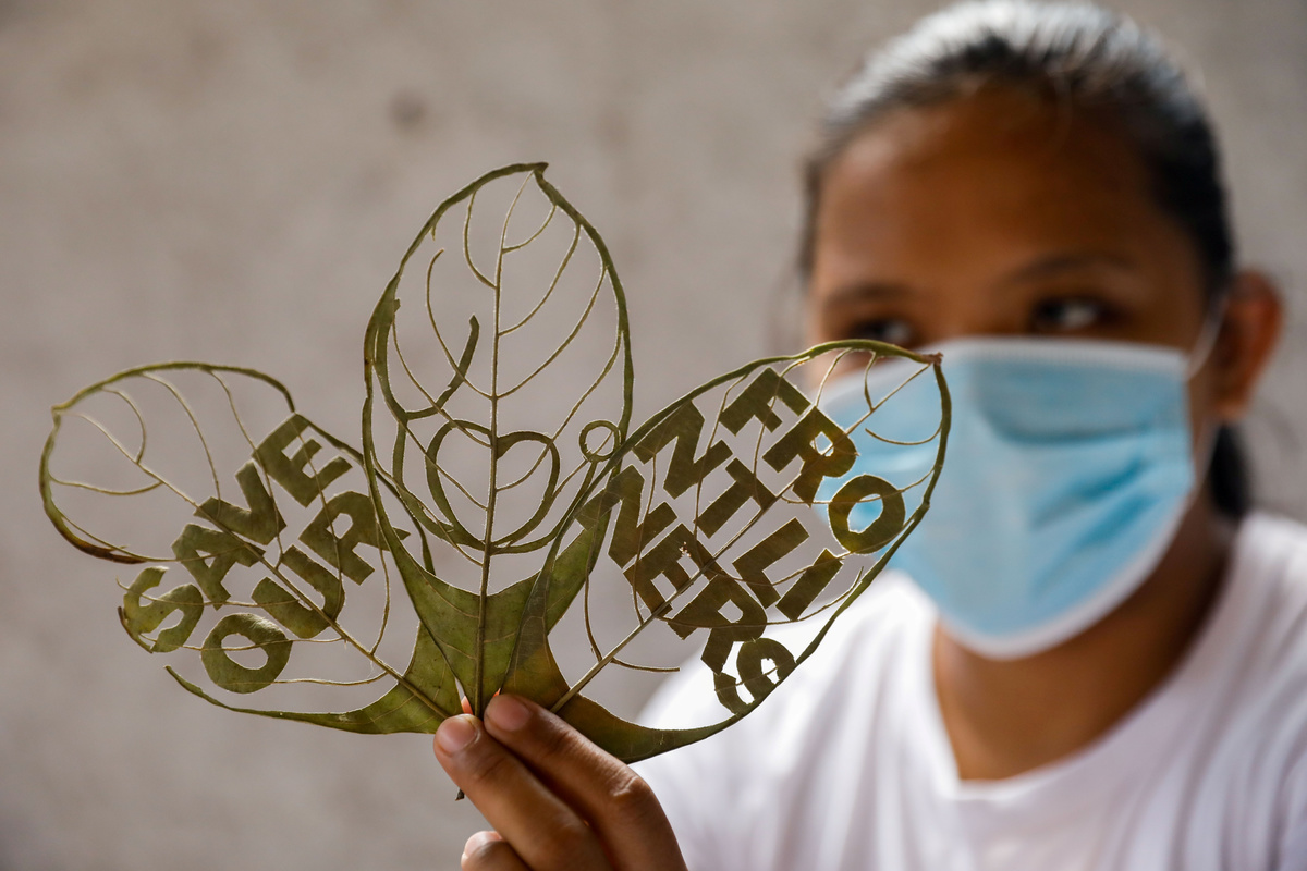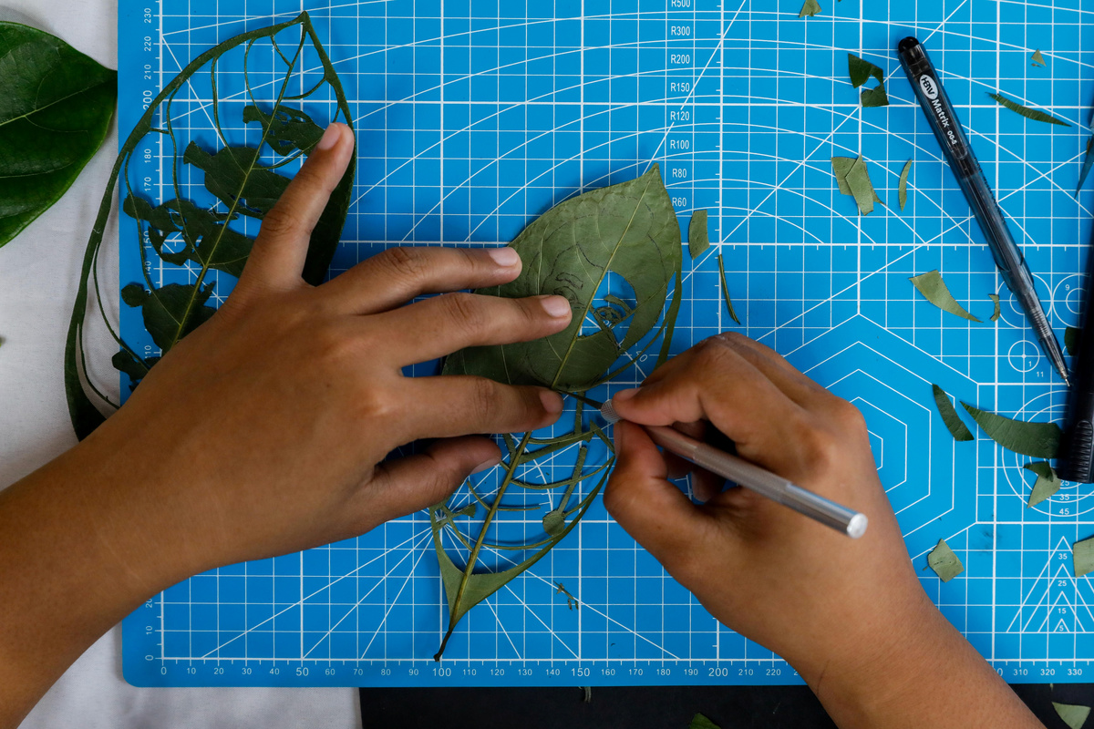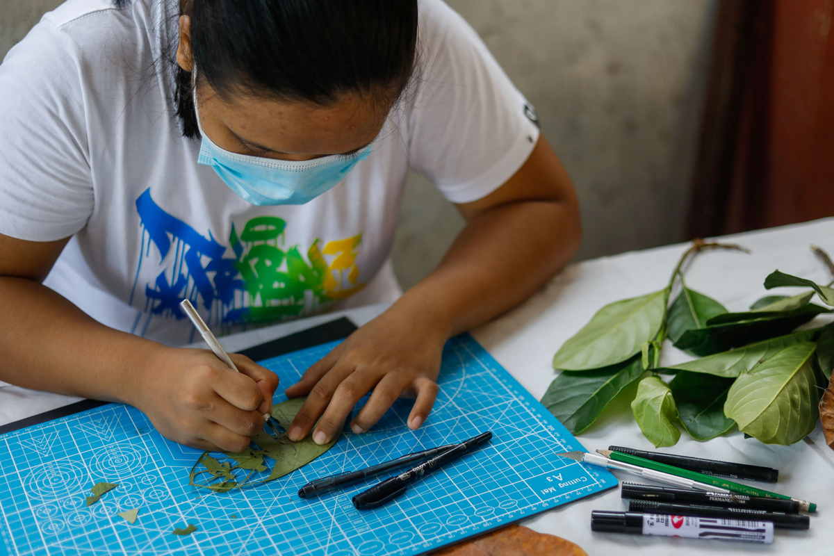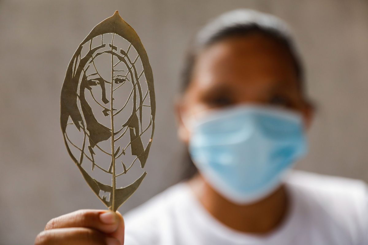 When the coronavirus struck and cost Mary Mae Dacanay her factory job in the Philippines, the 23-year-old came up with a unique new source of income - turning leaves into celebrity art.