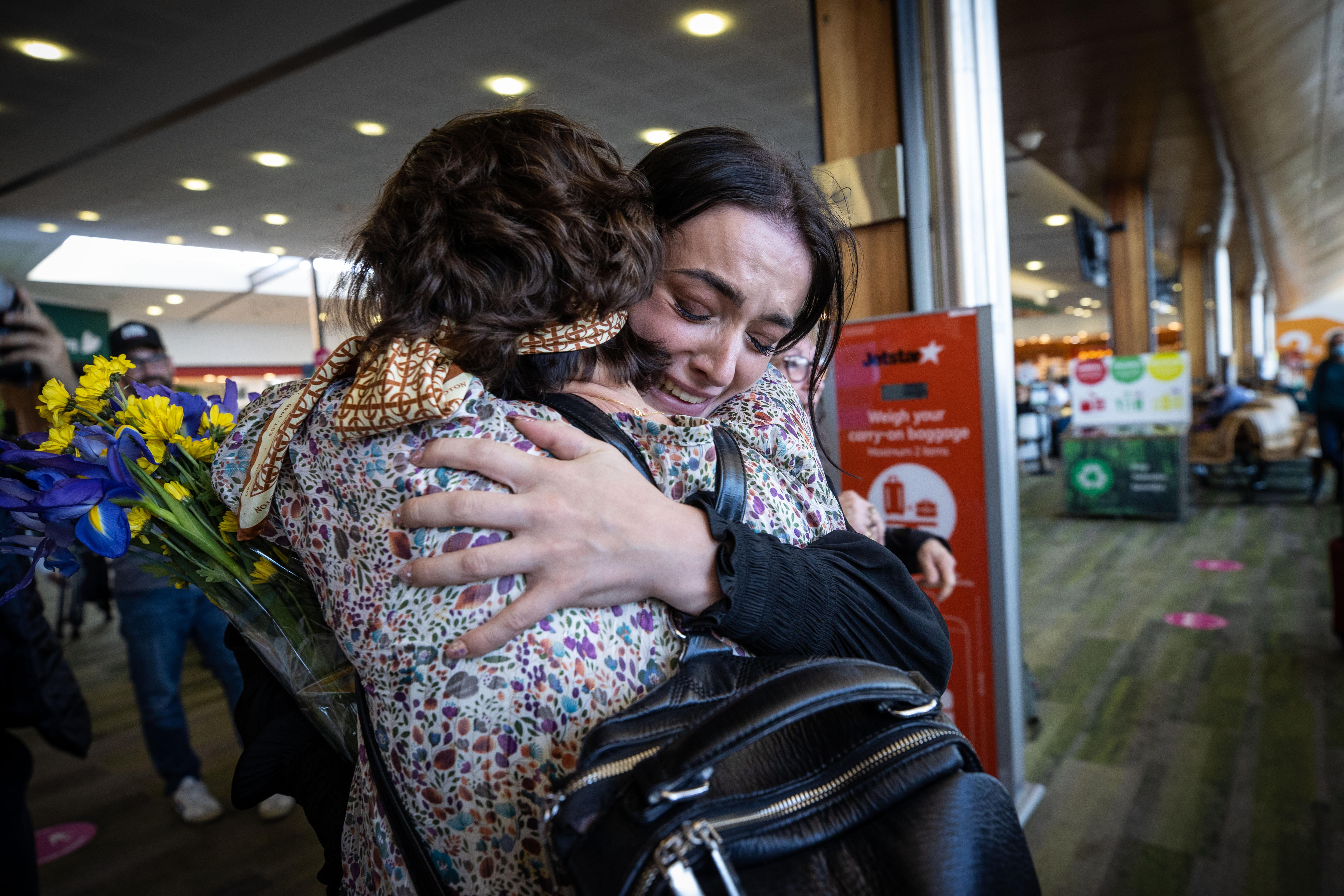 The couple touched down safely in Hobart in March last year, running into the embraces of family members.