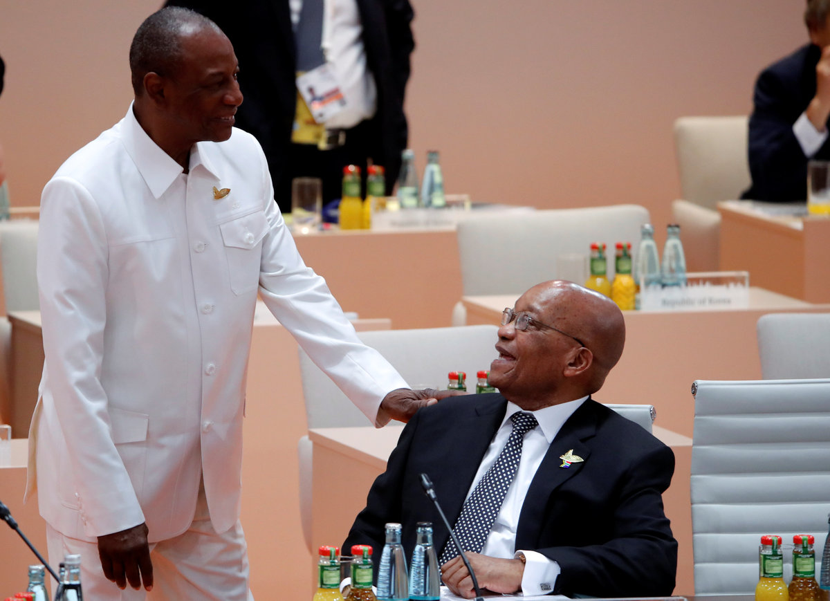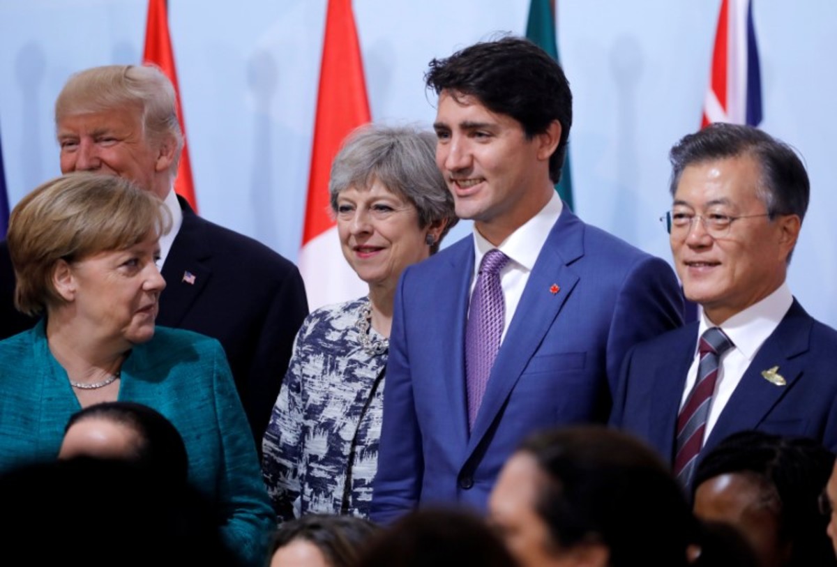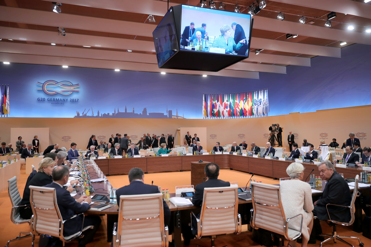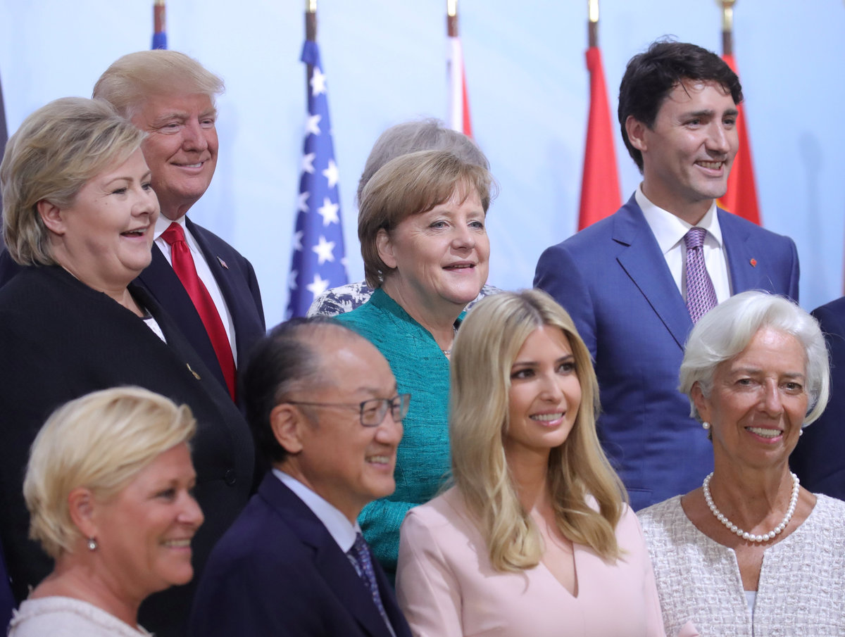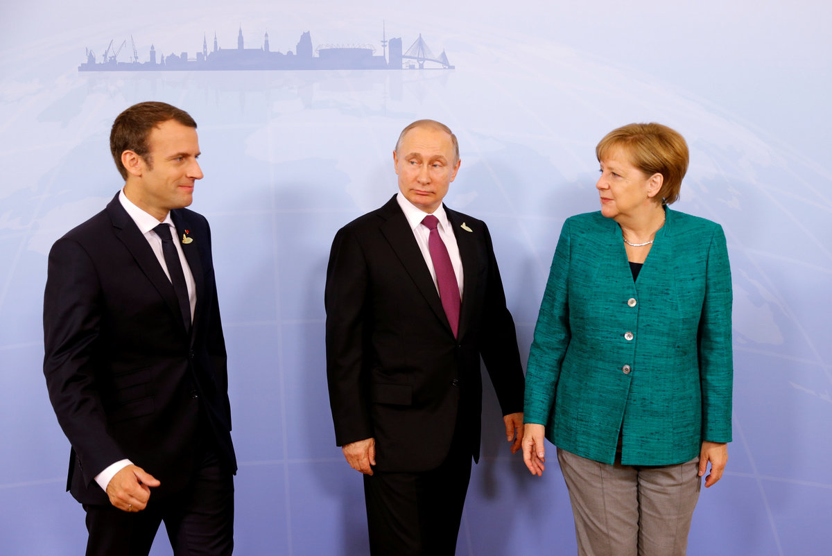 German Chancellor Angela Merkel, Russian President Vladimir Putin and French President Emmanuel Macron meet during the G20 leaders summit in Hamburg, Germany July 8, 2017. REUTERS/Carsten Rehder, PoolGerman Chancellor Angela Merkel, Britain's Prime Minister Theresa May, U.S. President Donald Trump, Canadian Prime Minister Justin Trudeau and South Korea's President Moon Jae-in pose for the family photo at the Women’s Entrepreneurship Finance event during the G20 leaders summit in Hamburg, Germany July 8, 2017. REUTERS/Carlos BarriaGuinea's President Alpha Conde talks to South African President Jacob Zuma before a working session at the G20 leaders summit in Hamburg, Germany July 8, 2017. REUTERS/Wolfgang RattayU.S. President Donald Trump attends the Women’s Entrepreneurship Finance event during the G20 leaders summit in Hamburg, Germany July 8, 2017. REUTERS/Carlos BarriaGerman Chancellor Angela Merkel, Britain's Prime Minister Theresa May, U.S. President Donald Trump, Canadian Prime Minister Justin Trudeau pose for the family photo at the Women’s Entrepreneurship Finance event during the G20 leaders summit in Hamburg, Germany July 8, 2017. REUTERS/Carlos BarriaBritain's Prime Minister Theresa May talks with U.S. President Donald Trump during the G20 leaders summit in Hamburg, Germany July 8, 2017. REUTERS/Carlos BarriaGerman Chancellor Angela Merkel, Russian President Vladimir Putin and French President Emmanuel Macron meet during the G20 leaders summit in Hamburg, Germany July 8, 2017. REUTERS/Philippe WojazerCanadian Prime Minister Justin Trudeau speaks at the Women’s Entrepreneurship Finance event during the G20 leaders summit in Hamburg, Germany July 8, 2017. REUTERS/Carlos BarriaSouth African President Jacob Zuma talks on the phone before a working session at the G20 leaders summit in Hamburg, Germany July 8, 2017. REUTERS/Wolfgang RattayAustralian Prime Minister Malcolm Turnbull, World Bank President Jim Yong Kim, Japanese Prime Minister Shinzo Abe, U.S. President Donald Trump and Ivanka Trump pose for the family photo at the Women’s Entrepreneurship Finance event during the G20 leaders summit in Hamburg, Germany July 8, 2017. REUTERS/Carlos BarriaU.S. President Donald Trump and German Chancellor Angela Merkel attend the Women’s Entrepreneurship Finance event during the G20 leaders summit in Hamburg, Germany July 8, 2017. REUTERS/Carlos Barria