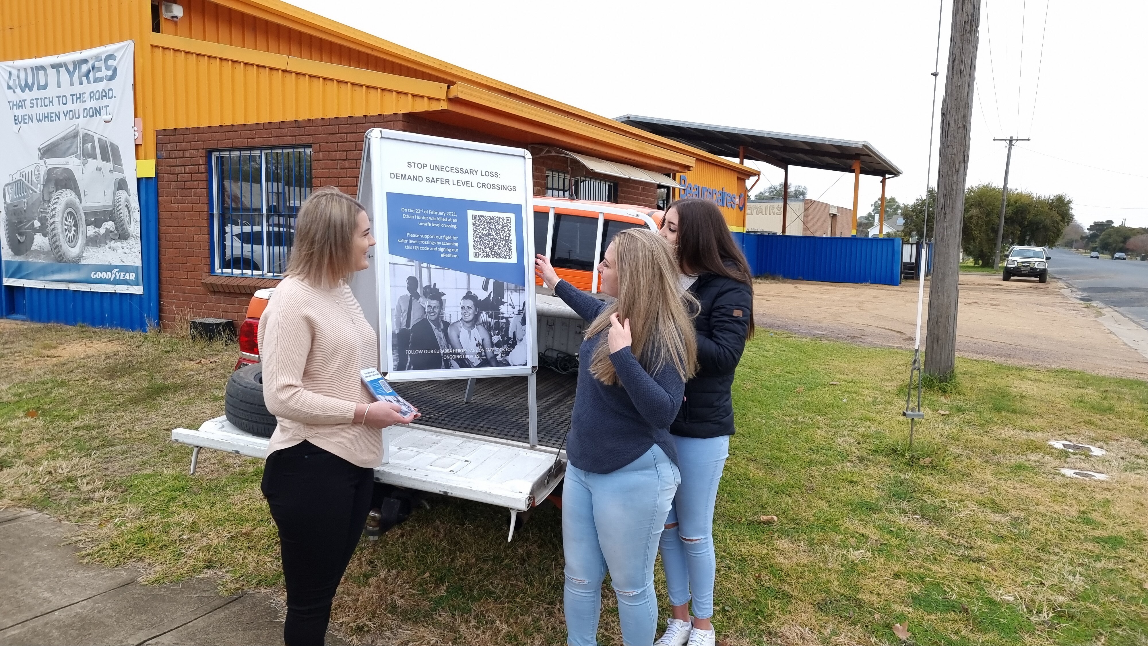 "We're petitioning for lights to be mandatory at all level crossings and reflective materials and strobe lights to be made compulsory on locomotives," Maddie says.