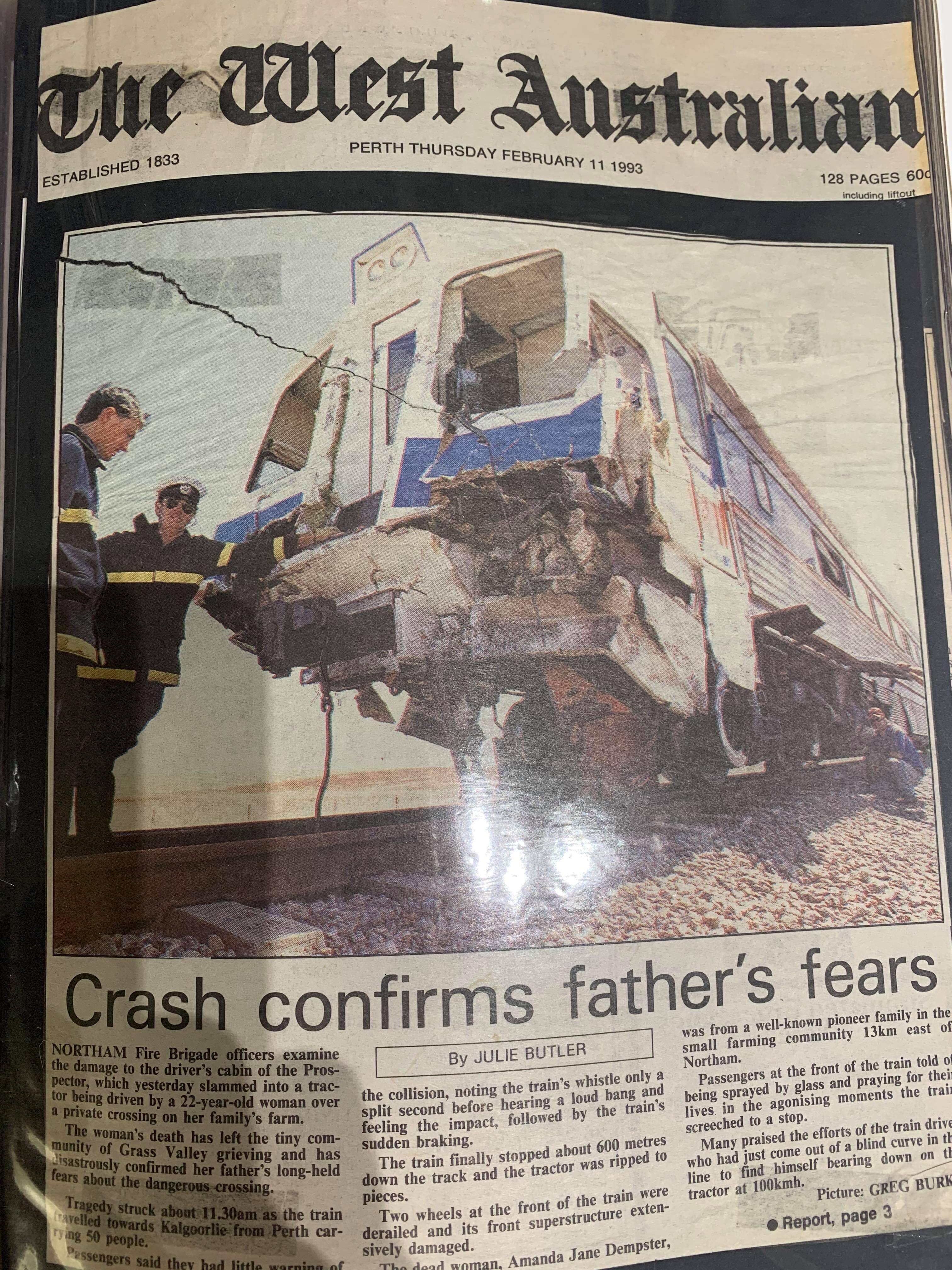 A Perth-Kalgoorlie passenger train killed Milly's sister Amanda in 1993 as she drove a tractor through the family's farm.