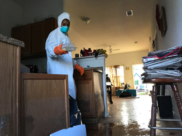 As she continued cleaning, her son came across a container filled with books on radiology Corinth Williams had studied on her way to becoming an X-ray technician in Beaumont. Since the floodwaters receded, she was back at work, starting her shift at 7:30 a.m. The books were heavy with water.