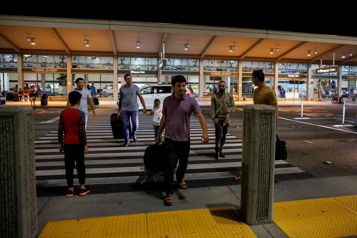 The older Majidi stared intently at the staircase where arriving passengers descended Thursday night. When the younger brother finally arrived, they engaged in a subdued embrace. The older Majidi's two sons and Mohammad Safa, a childhood friend who also had worked as an interpreter for the U.S. military, soon joined with more exuberant greetings.