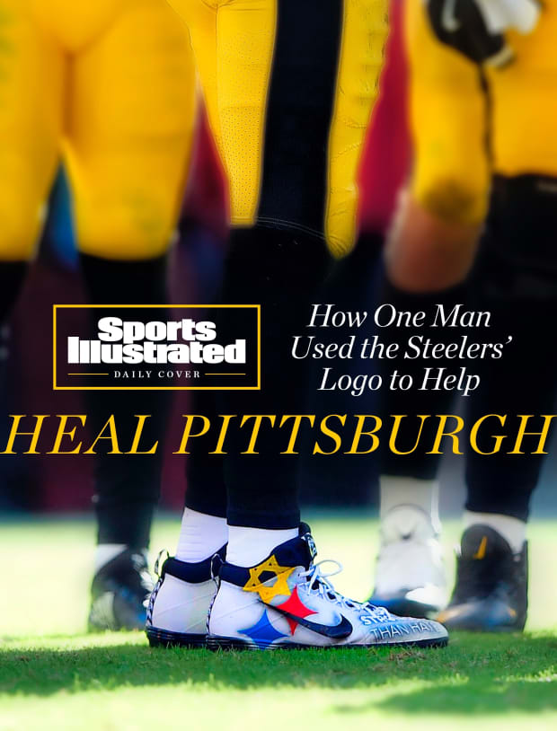 The team’s close relationship with the victims made it fitting that Hindes gave them merchandising rights to the design. Later in the week after the shooting, according to Hindes, “the Steelers reached out to me and said, ‘Hey, we are getting all these requests; people think it’s our symbol—would you be willing to sign over merchandising rights to us, and you maintain design rights?’ ” Hindes agreed, on the condition that any money the team raised with merchandising be given to the victims’ funds or to anti-hate groups.