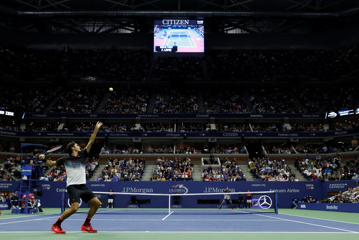 Chasing a sixth U.S. Open title, Federer needed just one hour and 46 minutes under a closed roof at Arthur Ashe Stadium to put away the 31st seed Lopez, leaving plenty in the tank after being forced to go the distance in his opening two matches.