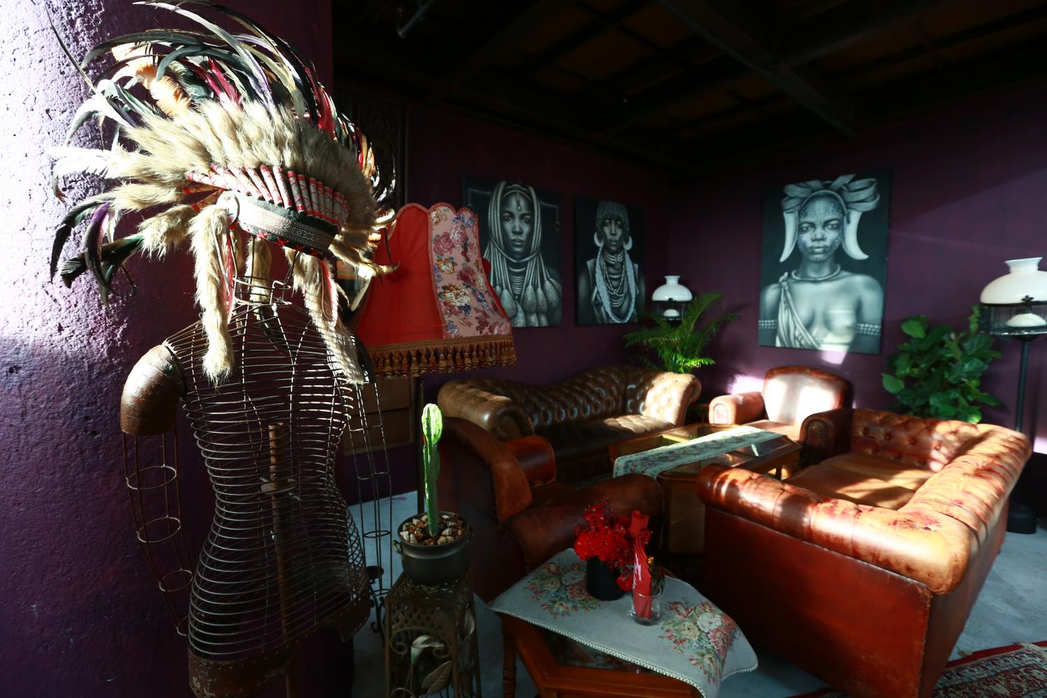 The warmly lit main hall is occupied by gold-trimmed vintage upholstery and wooden coffee tables on a sea of Persian rugs. There are also antique artefacts and framed paintings -- all from the owner's personal collection. That is with a glistening neon wall, live stage and dance floor to give to the bygone air some contemporary touches.