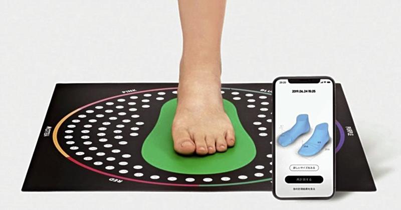 By placing a foot on the mat and using a smartphone camera to take an image, users can measure not only the length of their feet but also the width of their heels and instep height in millimeters, according to the company.