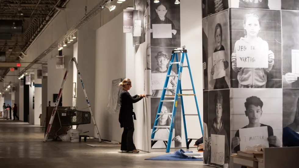 Inside Festival Hall at Navy Pier yesterday, art handlers, gallery employees and artists were busy setting up. Art pieces were delicately unwrapped.