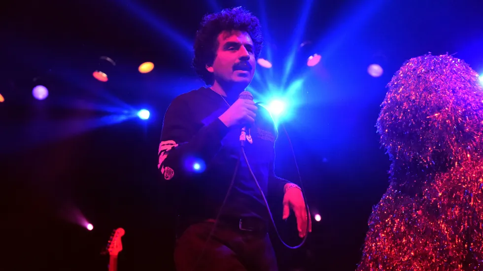 “Wake Up Tomorrow,” the first track from his latest album “Far In,” takes its inspiration from a “Twilight Zone” episode. Trained as a visual artist, he also incorporates elements of performance art in his concerts, where he often appears with dancers he’s dubbed “Tinsel Mammals,” modeled after Cousin Itt from the ’60s sitcom “The Addams Family” (but covered in silver fringe instead of hair).