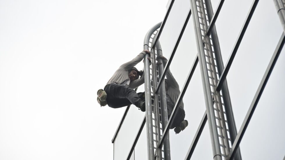 Workers in a West Loop skyscraper got a surprise today when they looked out the window to find a man climbing the Accenture Tower.