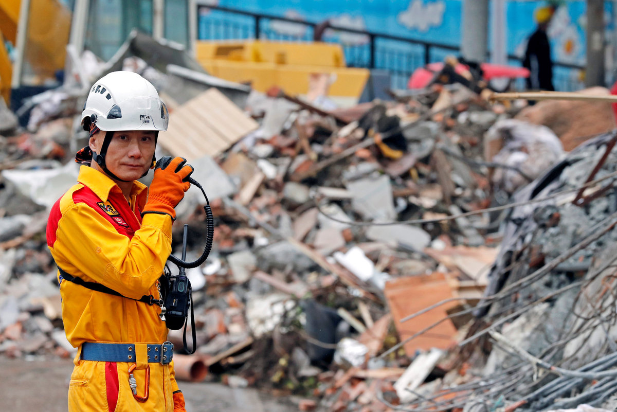 HUALIEN, Taiwan (Reuters) - Scores of aftershocks hampered rescue efforts on Thursday as emergency personnel combed through collapsed buildings in search of survivors after a powerful earthquake killed at least 10 people near Taiwan's tourist city of Hualien.