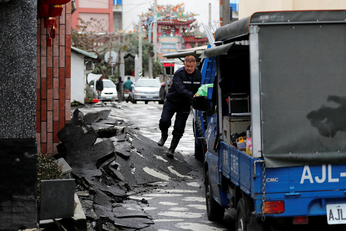 Hualien, whose rugged Pacific coastline and picturesque Taroko Gorge National Park are a major tourist draw, is home to about 100,000 people. Its streets were buckled by the quake, leaving large cracks in major roads.