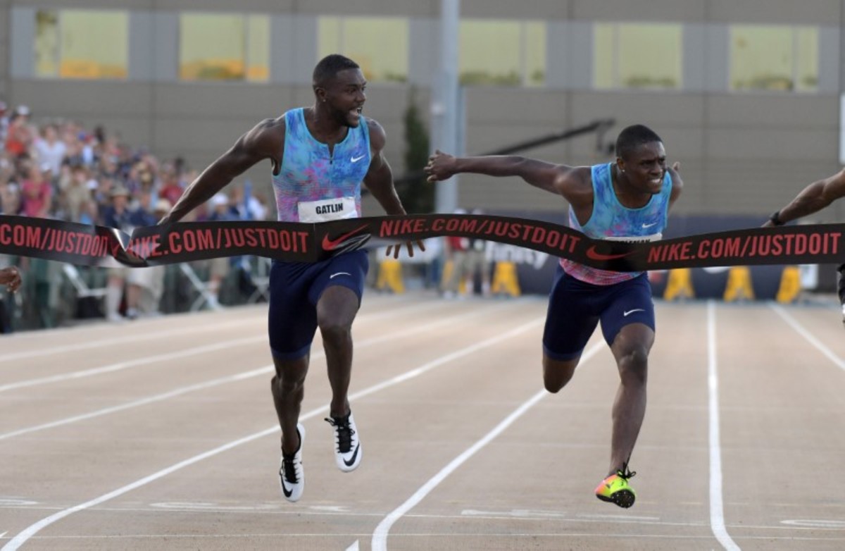 Olympic silver medallist Justin Gatlin stormed to the lead in the final 20 metres and defeated favoured youngster Christian Coleman in the 100 metres final at the U.S. nationals/world championships trials on Friday.
