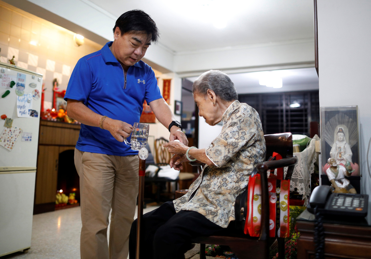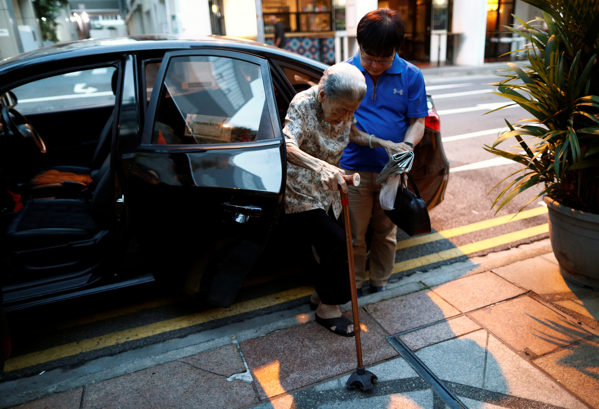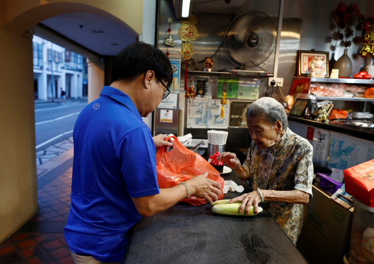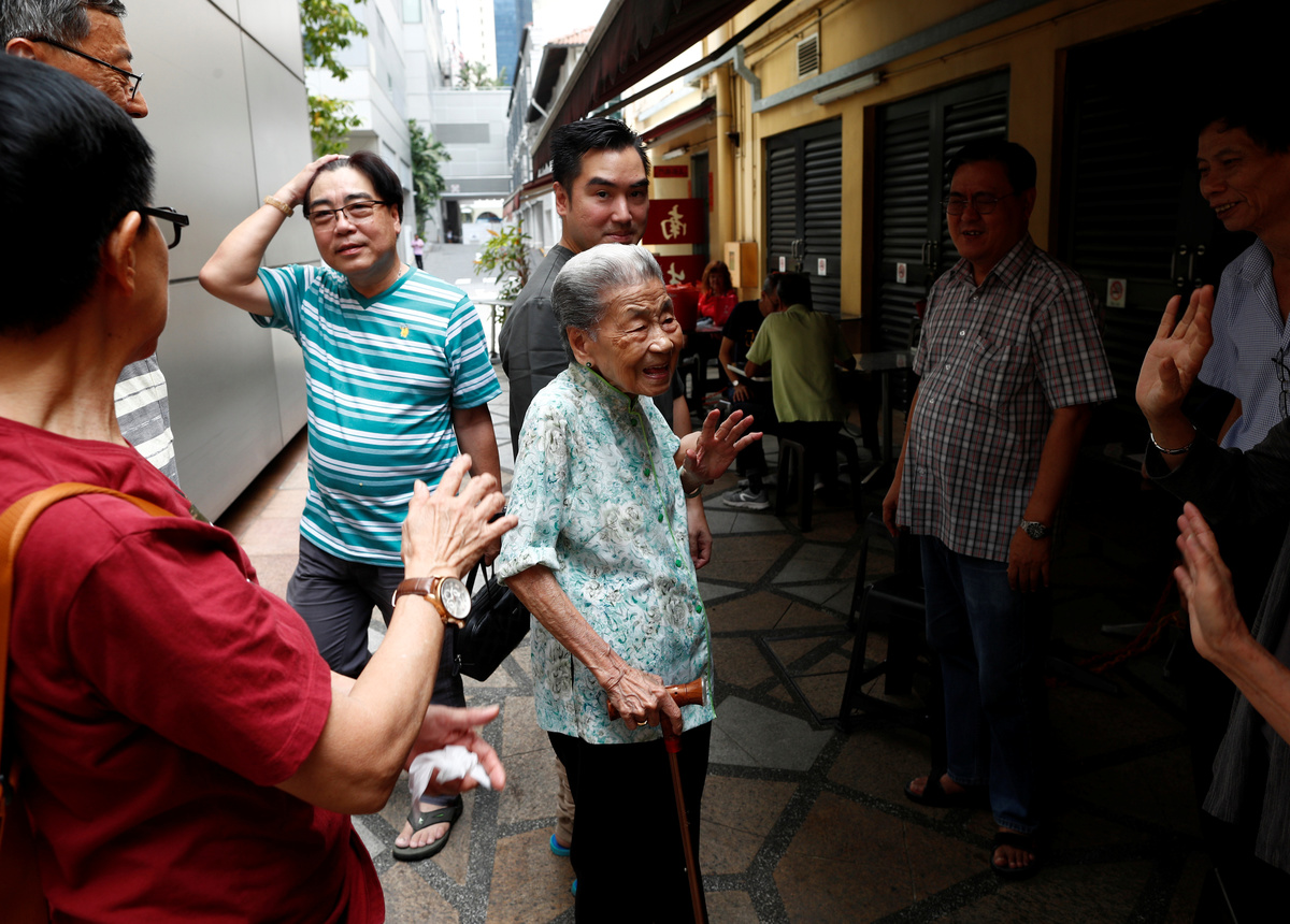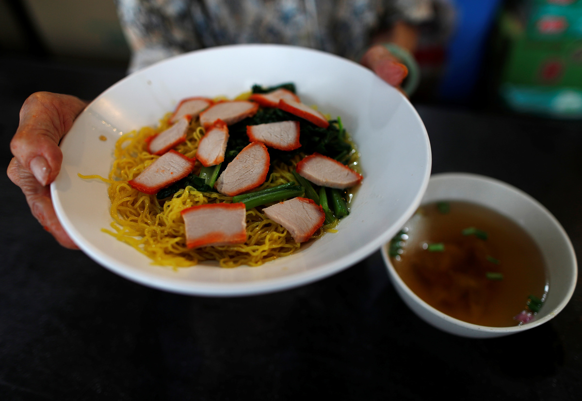 SINGAPORE (Reuters) - Leong Yuet Meng cannot walk more than 10 meters without assistance. Yet, the frail 90-year-old still runs a wonton noodle stall in downtown Singapore, selling at least 200 bowls on any given day.
