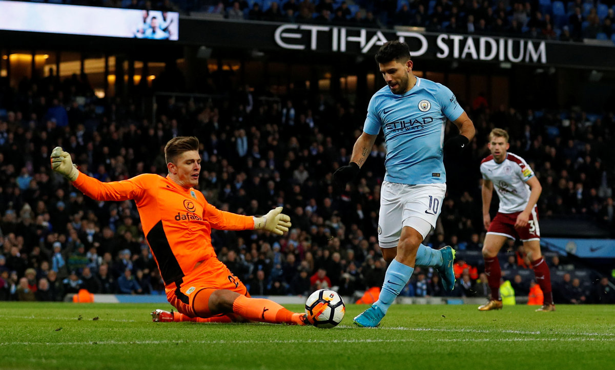 Ilkay Gundogan took a quick free kick to Aguero, catching the Burnley defence off-guard and the Argentine gleefully fired past Nick Pope.
