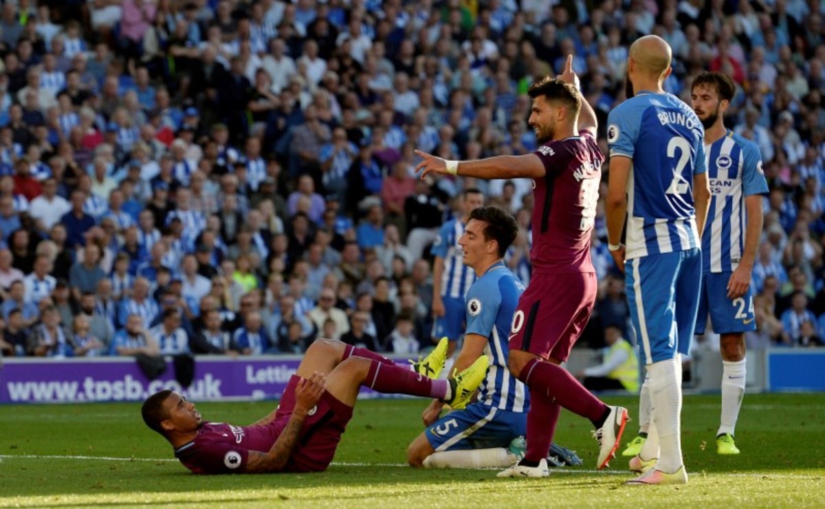 City's Gabriel Jesus had two goals ruled out - for handball and offside - and Pep Guardiola's team struggled to break a stubborn Brighton side down until Aguero fired home a pass from David Silva to open the scoring in the 70th minute.