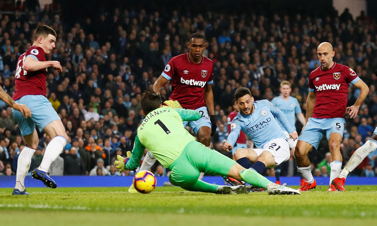 Pep Guardiola's side dominated the game with 76 percent ball possession but West Ham defended intelligently and almost did enough to produce a surprise result.
