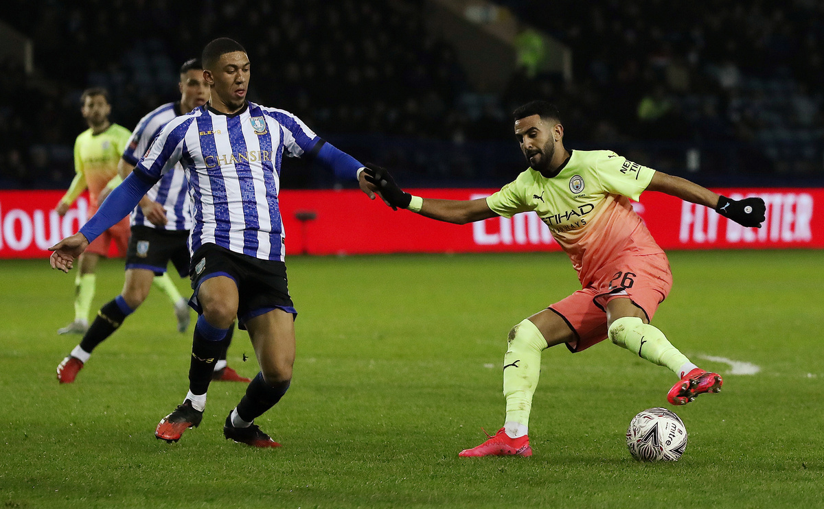 John Stones headed a chance over, Nicolas Otamendi headed a Mahrez free kick against the crossbar and Benjamin Mendy's ferocious shot produced a brilliant save from Joe Wildsmith who turned it against the bar.