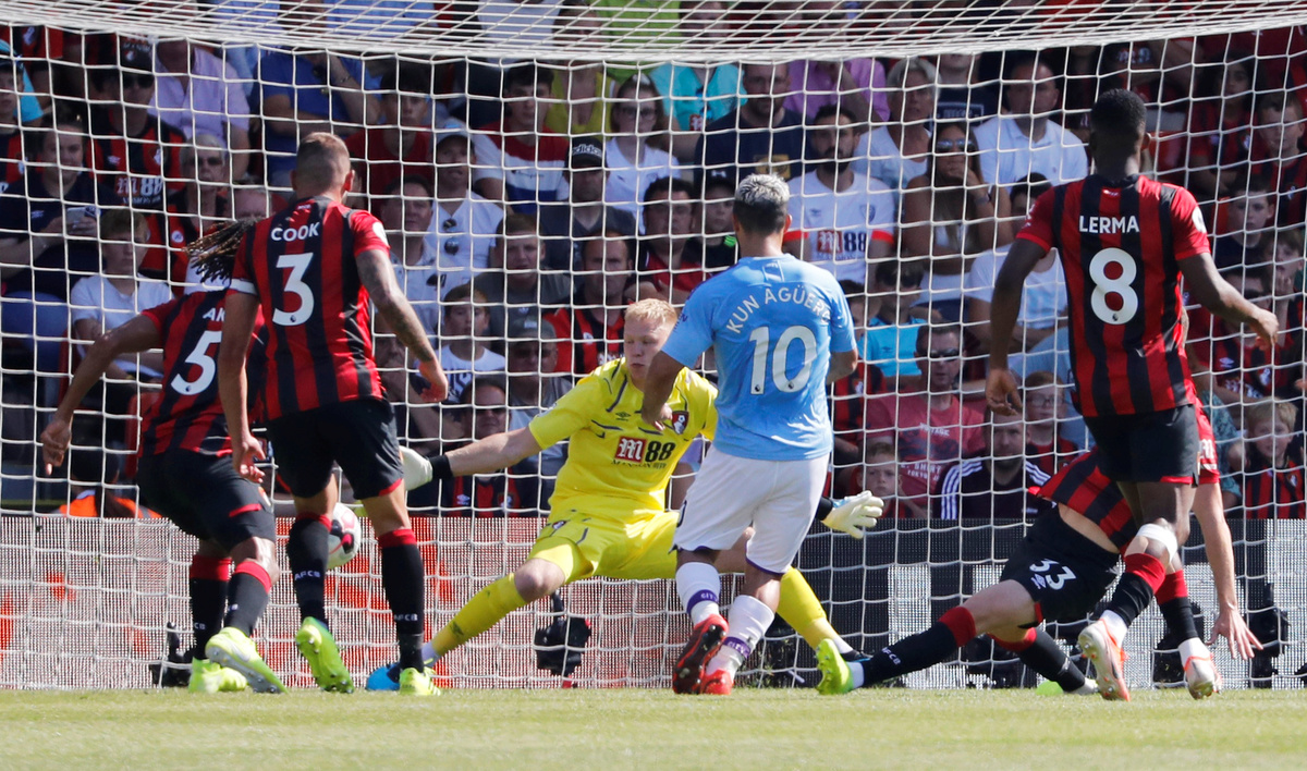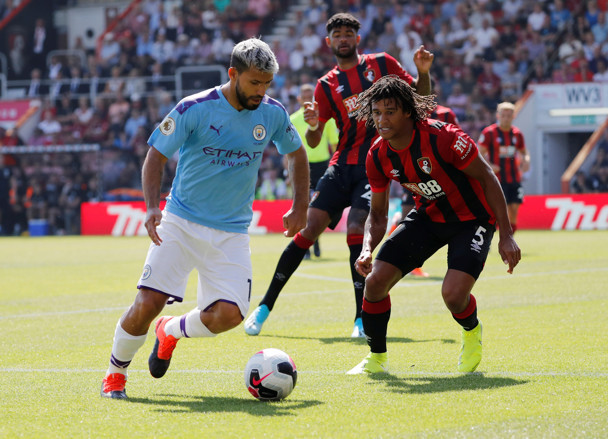 BOURNEMOUTH, England (Reuters) - Sergio Aguero struck twice as Manchester City moved into second place in the Premier League, two points behind leaders Liverpool, with a 3-1 win at Bournemouth on Sunday.