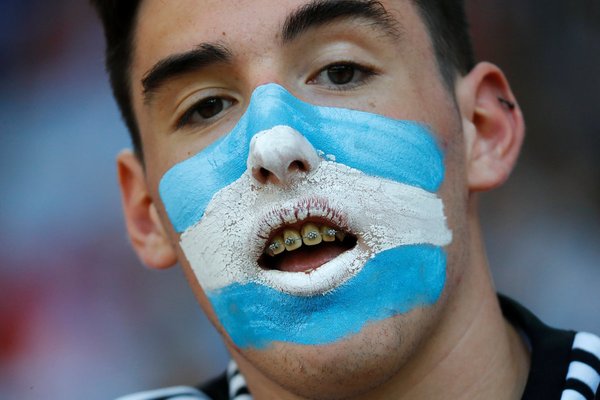 Soccer Football - World Cup - Group D - Argentina vs Iceland - Spartak Stadium, Moscow, Russia - June 16, 2018 Iceland fans before the match REUTERS/Kai PfaffenbachSoccer Football - World Cup - Group D - Argentina vs Iceland - Spartak Stadium, Moscow, Russia - June 16, 2018 Iceland fans before the match REUTERS/Kai PfaffenbachSoccer Football - World Cup - Group D - Argentina vs Iceland - Spartak Stadium, Moscow, Russia - June 16, 2018 Argentina fan with face paint before the match REUTERS/Kai PfaffenbachSoccer Football - World Cup - Group D - Argentina vs Iceland - Spartak Stadium, Moscow, Russia - June 16, 2018 Argentina fan before the match REUTERS/Maxim Shemetov