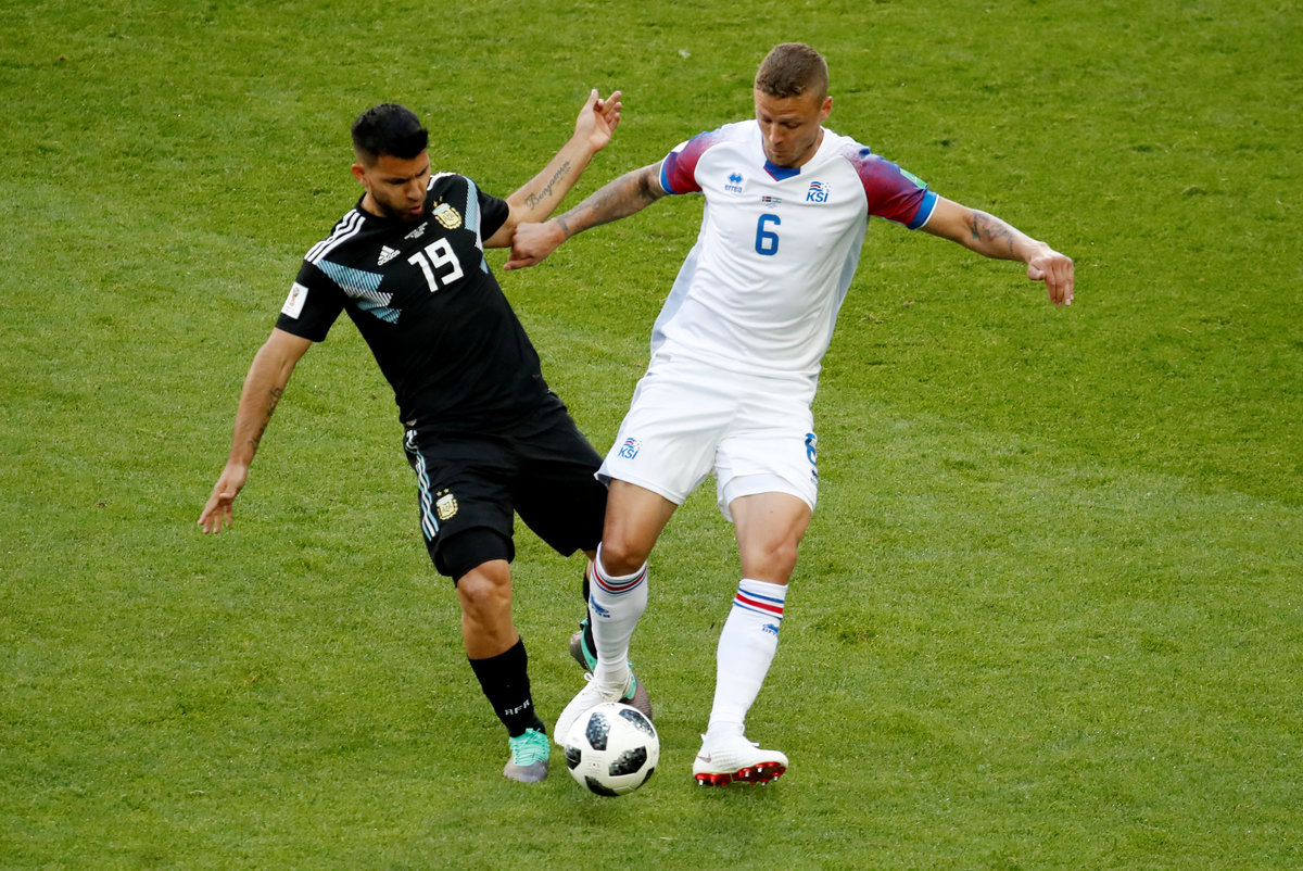 Soccer Football - World Cup - Group D - Argentina vs Iceland - Spartak Stadium, Moscow, Russia - June 16, 2018 Argentina's Sergio Aguero in action with Iceland's Ragnar Sigurdsson REUTERS/Christian Hartmann