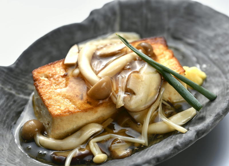 3. Put the mushrooms, dashi, light soy sauce, mirin, grated ginger and water in a pan to heat. When the mixture comes to a boil, turn off heat and add katakuriko dissolved into the same amount of water. Heat the pan until the mixture comes to a boil again to thicken into a sauce.