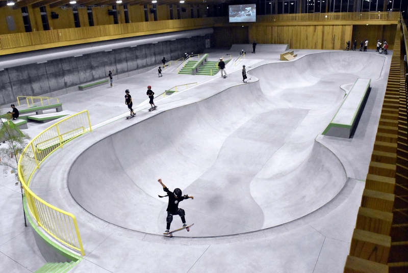 This spring, the city built an indoor facility, Murakami City Skate Park, at a total cost of about 1.55 billion yen. The facility has a bowl-shaped "park" designed for international competitions, and a "street" with stairs and pipes. In May, the National Championships were held there, and in June, the Indonesian national team used it for their training camp.