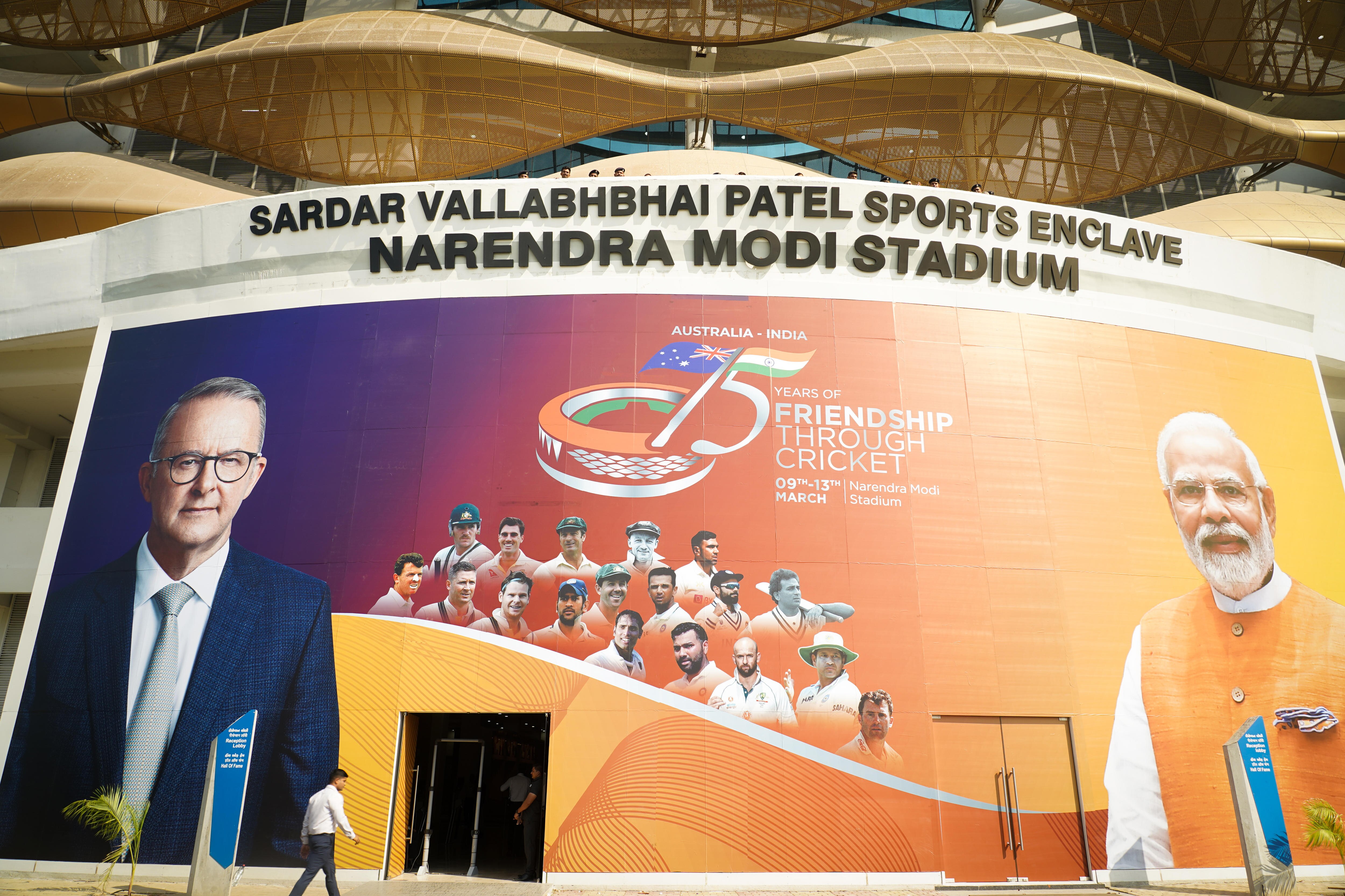 Prime Minister Anthony Albanese and his Indian counterpart Narendra Modi have been feted in front of a roaring crowd of some 50,000 people at the fourth Australia-India cricket test in Ahmedabad.
