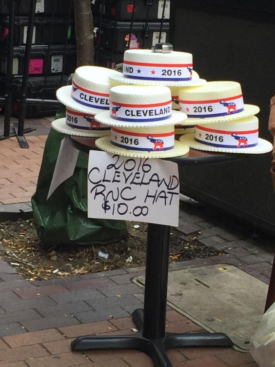 Elsewhere, hawkers were already setting up stalls selling buttons, T-shirts and flags variously celebrating Mr Trump and scorning his likely rival in November, Hillary Clinton. Some groups had taken to the skies, renting small planes trailing banners with assorted messages including one saying Ms Clinton belonged in prison.